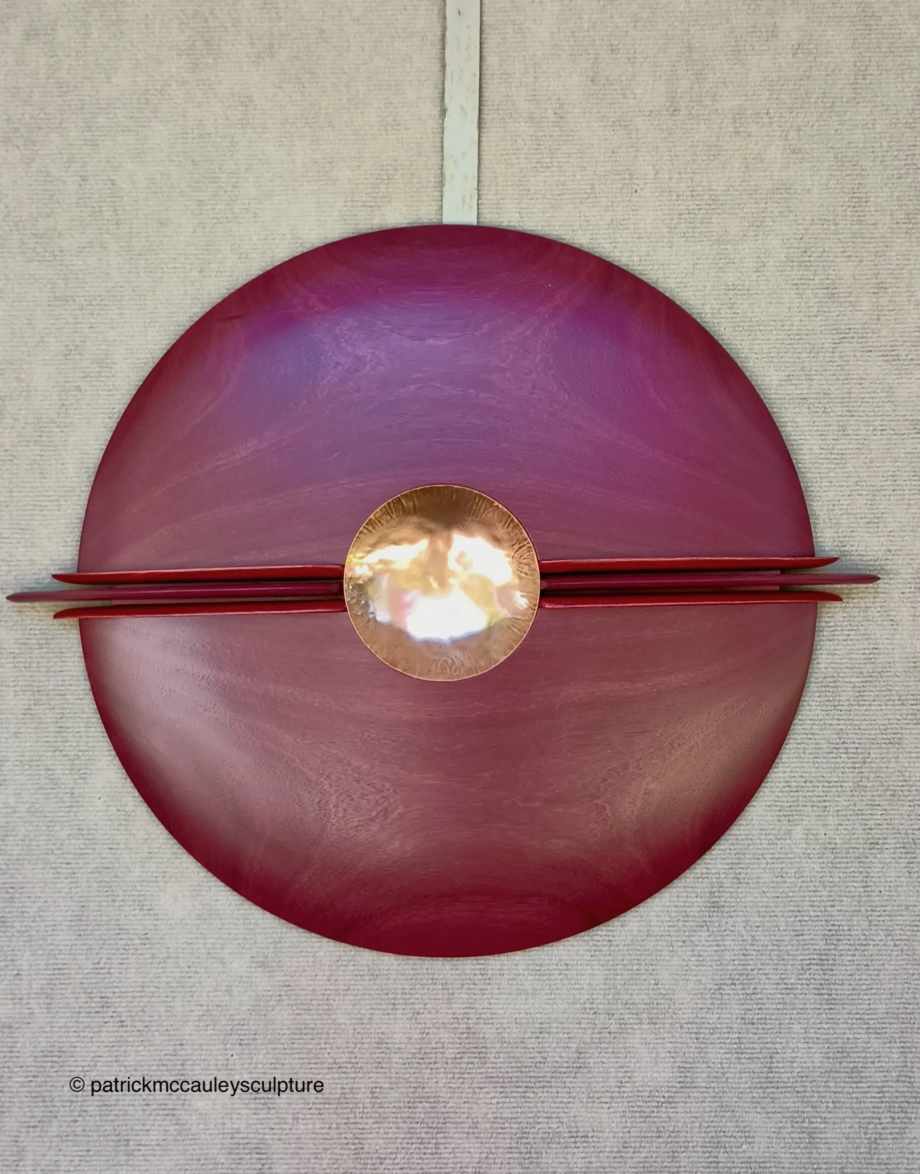 Lathe turned, hand cut and built Purpleheart, Bloodwood and hand formed copper.